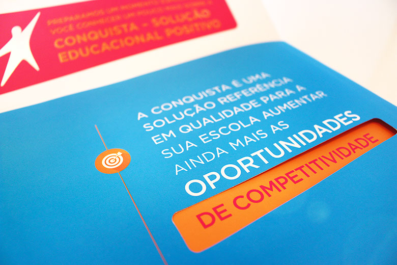Na segunda fase, a necessidade era se comunicar com os administradores e gestores das escolas. Assim, os materiais ganharam uma nova abordagem aliada ao conceito interativo. A sintonia entre estratégia e design resultou em peças que convidam à descoberta de alternativas para ampliar a competitividade da escola em um mercado cada dia mais concorrido.