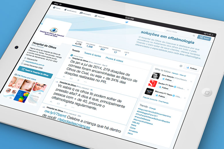 Atuamos em parceria com o Hospital de Olhos há mais de 10 anos, e ao longo deste tempo construímos e gerimos todo o processo de comunicação da instituição. Com expertise e conhecimento no segmento de saúde, utilizamos a nossa visão estratégica de branding para projetar cenários on-line/off-line e desenvolver a marca do Hospital em seus diferentes touch points.